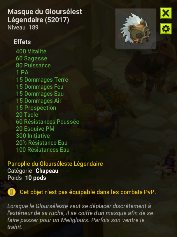 - Panoplie complète (Masque, Cape, Ceinture, Amulette, Bottes)